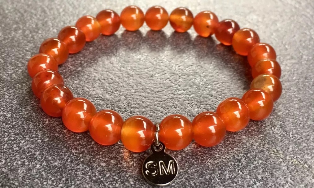 - Karneol - náramek 8 mm - dodává vitalitu, energii a pomáhá zmírnit únavu i apatii