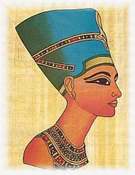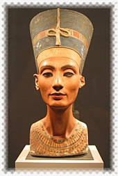 Královna Nefertiti byla synonymem pro ztělesnění ženské krásy. Její jméno by se dalo přeložit jako „nádherná žena přichází“. Nejznámější je její nádherná vápencová busta. Dílo pochází z rukou sochaře Thutmose a pochází z roku kolem 1360 př. n. l. Nefertiti je zobrazena s vysokou modrou korunou a s nádhrerným, nezvykle jemným obličejem. Busta se nyní nachází v egyptském muzeu v Berlíně.