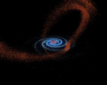 Za použití objemného balíku dat ze souhrnného průzkumu oblohy Two - Micron All Sky Survey (2MASS), rozsáhlého výzkumného programu průzkumu celé oblohy v infračerveném spektru, provedeného Massachusettskou univerzitou, získali astronomové odpovědi na mnohé otázky, které bezradné vědce sužovaly po desetiletí. Ukazuje se, že naše Mléčná dráha v rámci jakéhosi „galaktického kanibalismu“ konzumuje jednoho ze svých sousedů.