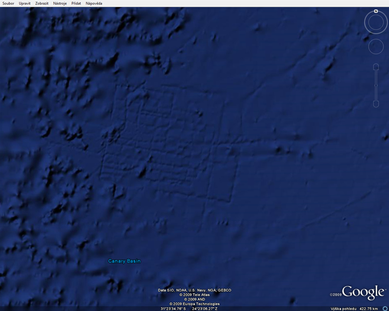 Jděte Mezi Kanárské ostrovy a Madeiru a pak mírně vlevo (31 st 23 min SŠ, 24 st 23 min ZD), výška cca 500 km. To bych rád věděl, jaká část historie Země je zde vidět a jak to vysvětluje vědecká společnost... ( viz obrázek... )