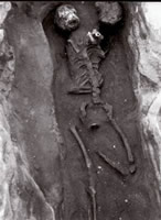 - Lochenice ? kostra ženy, ležící na břiše, přibitá železnými hřeby k prknu na dně hrobu.