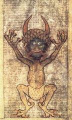 A právě zde, na straně 290, se nachází největší pozoruhodnost - je tu vyobrazena skoro půlmetrová barevná postava čerta. Ďábel je zarámován věžemi, jinak je obrázek prázdný. To odpovídá středověké představě prázdnoty, hlavního principu zla. Sympatický čertík sedí na bobku, čelem k čtenáři, ruce má vztyčené. Na všech svých končetinách má jen čtyři prsty. Obličej je zelený s dvěma jazyky, což poukazuje na dvojsmyslnost jeho řeči. Hlavu mu zdobí dva rohy. Na druhé straně je obraz velkého města s věžemi, kostely a chrámy. Pravděpodobně se jedná o nebeský Jeruzalém, město Boží. Snad protiváha k ďáblíkovi...