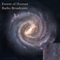 Nyní se podíváme na samotnou Zemi, spousta lidí se mylně domnívá, že země už více než sto let září do vesmíru jako radiový maják, pravdou však je, že drtivá většina radiových vln zaniká v kosmickém pozadí a není rozluštitelná již u Proximy Centauri, zbytek se dokáže dostat na nějakých 10-20 světelných let, než úplně zanikne, nejdále se dostane vysílání programu SETI, které je nyní vzdáleno 38 světelných let od Země, jedná však o velmi úzký svazek vln a jejich zachycení je možné pouze ve směru letu a za předpokladu, že mimozemšťané také aktivně vyhledávají cizí vysílání a budou mít notnou dávku štěstí, stejné štěstí pak budeme potřebovat mi pro zachycení odpovědi.