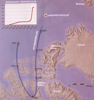 Podľa vedcov sa skutočne niečo deje vo vnútri planéty. Niečo, čo nedokážu jednoznačne vysvetliť. Je dávno známe, že severný magnetický pól nie je totožný so zemepisným pólom. V súčasnosti je rozdiel približne 500 km. Podobne aj na juhu, delí ich v súčasnosti 2500 km. (pozn.: vo fyzikálnom zmysle na severnej pologuli sa nachádza južný geomagnetický pól a naopak. Pre zjednodušenie označujem severný geomagnetický pól ten, ktorý sa nachádza v blízkosti severného geografického pólu.) Začiatkom dvadsiateho storočia zistili vedci, že magnetické póly Zeme pomaly menia svoju polohu. Poloha severného magnetického pólu sa za 400 rokov posunula o niekoľko tisíc kilometrov (pozn.: nedočítal som sa ako na to vedci prišli). Začiatkom dvadsiateho storočia sa menila poloha severného magnetického pólu rýchlosťou asi 5 km za rok. Rýchlosť posunu severného magnetického pólu bola v 20. stor. ustálená na hodnote asi 10 km za rok. Zarážajúce ale je, že v posledných desaťročiach sa pohyb zmeny severného magnetického pólu zrýchľuje. Po roku 1983 sa začala rýchlosť posunu zväčšovať a po roku 1990 sa rýchlosť pohybu výrazne zväčšila. V roku 1994 namerali vedci rýchlosť 15 km za rok. Na prelome tisícročí namerali rýchlosť 50 km za rok. V roku 2007 činil pohyb asi 60 km za rok. (podľa niektorých údajov, ku koncu prvého desaťročia až 65 km za rok). Južný magnetický pól svoju polohu mení rovnomerne a podstatne pomalšie, ako severný magnetický pól, konštantnou rýchlosťou asi 15 km za rok. Rýchlejší pohyb magnetického pólu v posledných rokoch je povrchovým prejavom procesov prebiehajúcich vo vonkajšom jadre Zeme. Pôvod týchto búrlivých procesov však ostáva záhadou. Vedci nedokážu vysvetliť príčinu zrýchleného pohybu severného magnetického pólu, ani príčiny zmien pohybu v minulosti. Existujú len teórie a matematické modely. Podobné zmeny sa odohrali pred asi 780 tisíc rokmi. (spracované podľa článku „Špagety a huby“ z časopisu Kozmos 4/2011, str. 29)