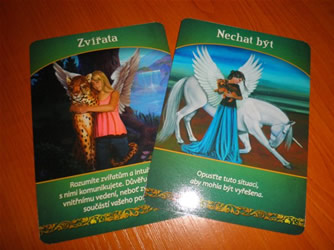 Druhý výklad, který mě těmito kartami zaujal, byl pro ženu, která se tvářila velmi zoufale. Nevěděla jsem o ní nic, a přesto mi vyšel výklad velmi silný, mířený na děti a zvířata. Snad sociální služby, útulek pro zvířata? Prostě nic, čím bych jí dala naději na lepší finanční zázemí. Reakce mě překvapila. Tato žena se s velkými díky rozpomněla na své dětství a zcela jasně si uvědomovala, kam jí srdce táhne. Jen to vše v sobě nějak potlačovala. Vzpomínky to byly nádherné a tak silné, působící celou její osobností, že jsem se nedivila tomu, když balíček karet vybral snad všechny jediné karty týkající se zvířat a dětí.