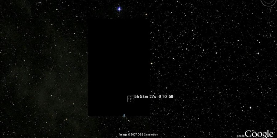 Nyní nežádoucí mohutný tmavý pruh Google Sky, který dříve ukrýval zvláštní kosmické těleso, Google odstranil a my máme možnost vidět okřídlený disk. Obrázek níže ukazuje, jak pracoval cenzurní systém Google v průběhu let.