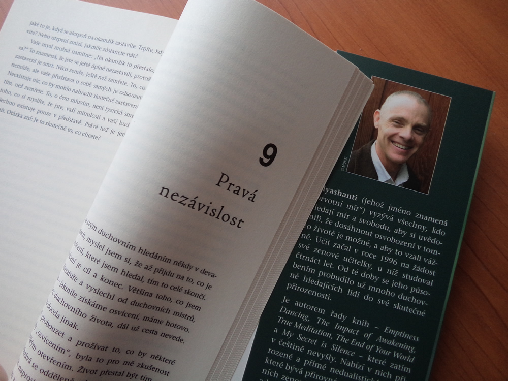 Kniha je to velmi hezky a něžně napsaná, dokonce až natolik, že jsem se v ní občas ztrácela. Jako by to byla jen taková něžná pavučinka, po které jsem se klouzala, ale záchranné lano ne a ne nalézt. Je asi pravda, že autor psal tuto knihu jako inspiraci, nikoliv jako tvrdý návod. V úvodu knihy píše, že cesta každého z nás je jiná a že jeho cílem je donutit čtenáře přemýšlet, meditovat a sám přicházet na řešení. Ne vždy jsem s Adyashantim souhlasila, ale třeba jsou to věci, ke kterým dospěji až časem. Co je v té jeho jemnosti? Předběhl dobu? Nebude jeho kniha plně pochopitelná za patnáct, dvacet let, kdy už stavu „milosti“ a plně prožívaného okamžiku budeme více schopni?