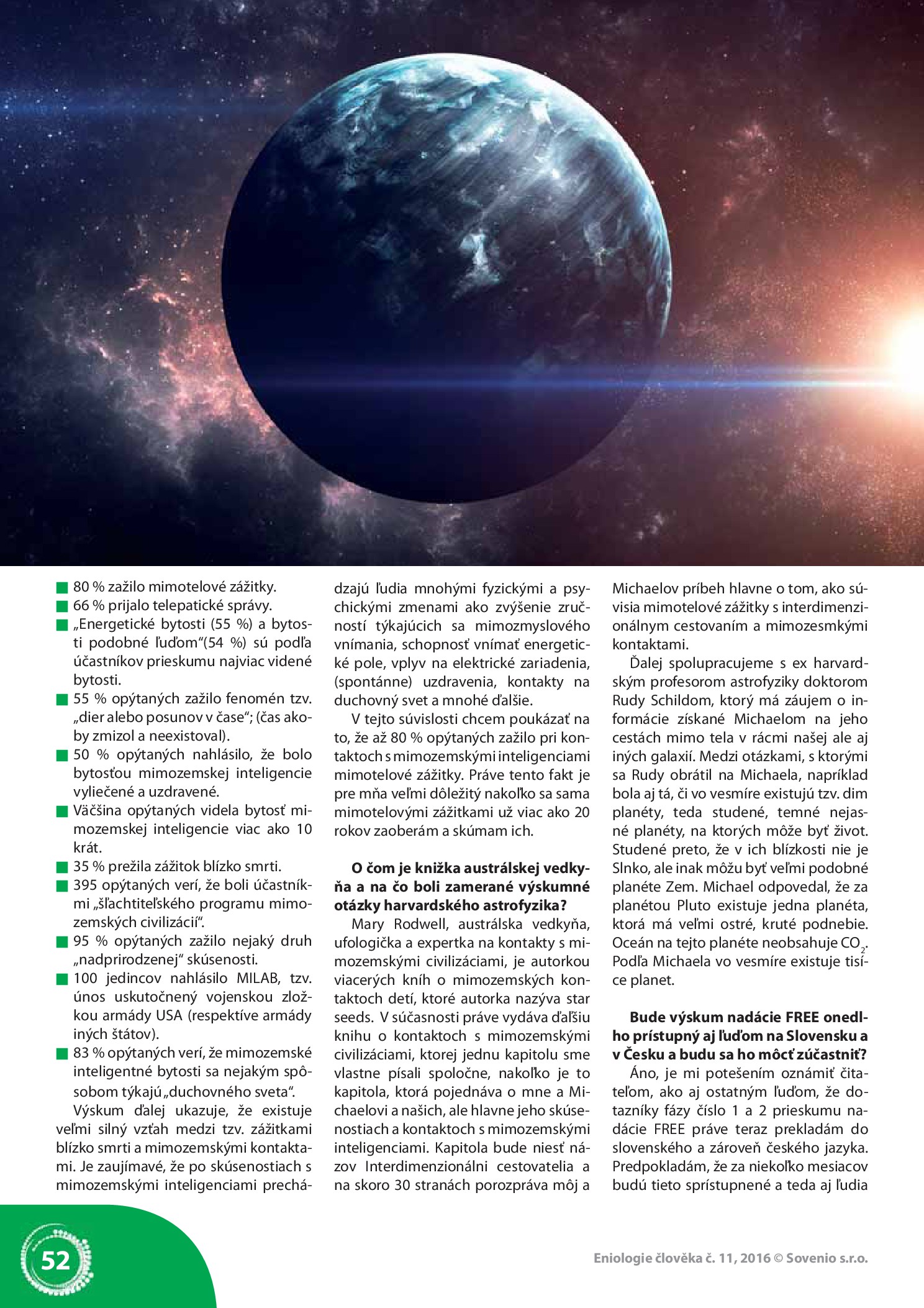 - 55 % opýtaných zažilo fenomén tzv. „dier alebo posunov v čase"; (čas akoby zmizol a neexistoval).