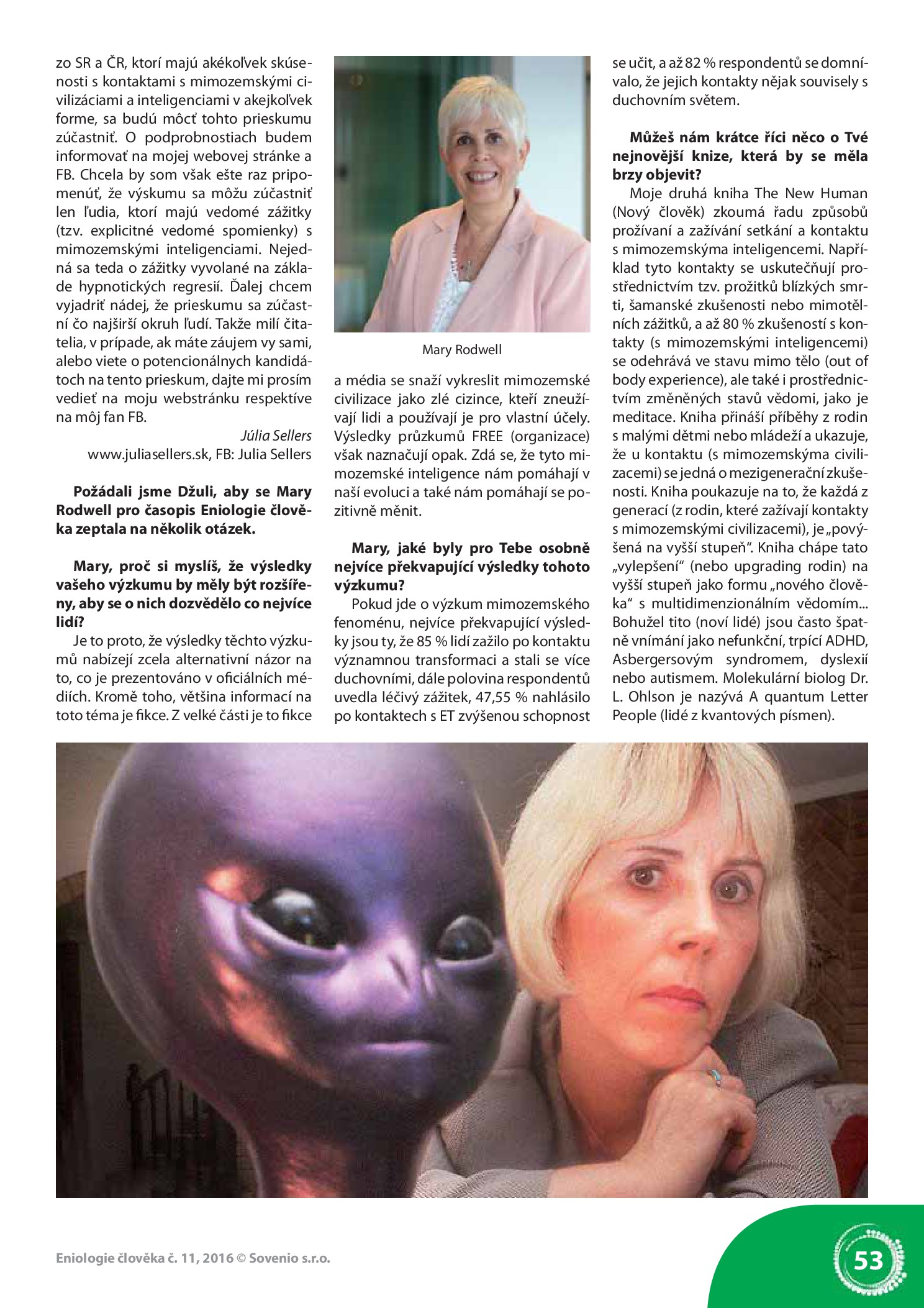 Mary Rodwell, austrálska vedkyňa, ufologička a expertka na kontakty s mimozemskými civilizáciami, je autorkou viacerých kníh o mimozemských kontaktoch detí, ktoré autorka nazýva star seeds. V súčasnosti práve vydáva ďaľšiu knihu o kontaktoch s mimozemskými civilizáciami, ktorej jednu kapitolu sme vlastne písali spoločne, nakoľko je to kapitola, ktorá pojednáva o mne a Michaelovi a našich, ale hlavne jeho skúsenostiach a kontaktoch s mimozemskými inteligenciami. Kapitola bude niesť názov Interdimenzionálni cestovatelia a na skoro 30 stranách porozpráva môj a Michaelov príbeh hlavne o tom, ako súvisia mimotelové zážitky s interdimenzionálnym cestovaním a mimozesmkými kontaktami.
