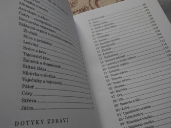 Schrötter nabízí v této knize řadu příjemných terapií, tvrdí anotace. Léčivé dotyky a působení se týkají především energetických drah, jejich masážím, stlačováním, akupresury a o příjemných dotycích lze mluvit i v kapitole o drahých kamenech, které jsou prostě miláčci do ruky i pro oko. No ale jinak je kniha stručnou, jasnou, čtivou a názornou encyklopedií zdraví, ve které pochopíte souvislosti mezi jednotlivými orgány, drahami, ale i mezi jídlem, chutěmi, které jíme… a najednou můžeme tělo vnímat velmi komplexně a pojednání o jednotlivých zdravotních problémech už je potom logicky souvislé povídání, nad kterým ani slůvkem nezapochybujete.