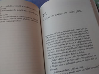 A namlsala jsem se už od anotace...Odnepaměti slýchali, že jen tak ochrání město před jejími zlými čáry. Jenže čarodějnice Xan není krutá. Naopak, o opuštěné dítě se postará, nakrmí je výživnou hvězdnou září a najde mu novou, milující rodinu na druhé straně lesa. Ale jednou dá novorozené holčičce omylem napít svitu měsíce a té začne v krvi kolovat magie. Xan se rozhodne děvčátko vychovat sama, pojmenuje je Luna a jeho kouzelné schopnosti zapečetí do doby, než bude Luně třináct let a zmoudří. Jenže jak se blíží dívčiny třinácté narozeniny, kouzla začínají vyplouvat na povrch. Nad lesem se shlukují obrovská hejna hrozivých ptáků, pod zemským povrchem se probouzí sopka a kolem obchází žena s tygřím srdcem. A z Protektorátu míří k lesu muž odhodlaný Xanu zabít. Brzy bude muset Luna bránit ty, kdo dosud chránili ji. A postavit se skutečnému zlu.