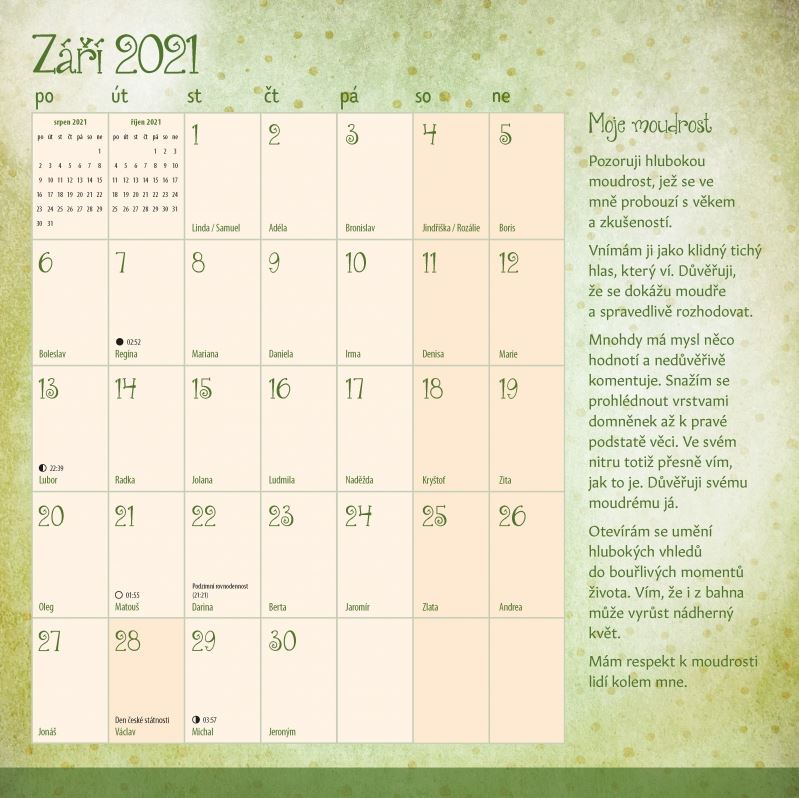 Co nás letos kalendář naučí, co nám připomene? Že nemáme poslouchat příběhy své mysli, ale raději naslouchat tomu, co se děje kolem nás.