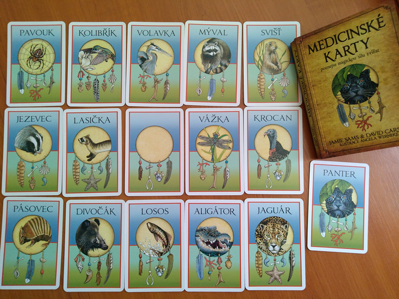 O Medicinských kartách: Jamie Sams, David Carson, ilustrace Angela Verneke: Umožní nám poznat starou magickou sílu zvířat a pomoci nalézt rovnováhu na naší životní cestě. Zdroj uzdravení a síly a pochopení složitých životních situací. Vydalo nakladatelství Synergie, 2021, nakladatelství Synergie Publishing, 2021, , www.synergiepublishing.com vydání třetí