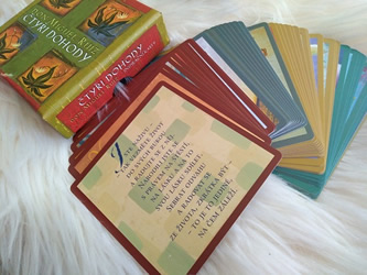 Máte rádi Čtyři dohody? Je to milé čtení, které mi svého času přišlo přesně do nálady a rozpoložení. Karty s touto tématikou pak umožňují začíst se do myšlenek těchto knih i v jednoduché formě a odnést si dojmy, ta pravá slova do všedního dne… Jednoduše, vytáhnout si z balíčku karet právě takovou myšlenku, jakou vás bude bavit se zaobírat. Nebo jakou zrovna potřebujete číst.