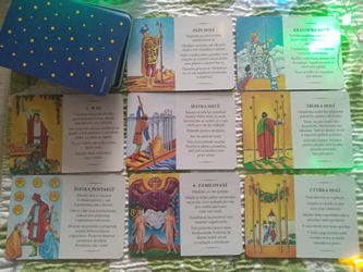 A ještě dokonalejší jsou pro rychlé výklady. Mít je hezky u konvičky s čajem a poradit se s nimi, když potřebujete; nedovedu si představit příjemnějšího společníka, tím více, že jde přímo k věci a nezaobaluje výklady do poetického snění. Nakonec, vyhovovat by karty mohly i každému, kdo má rád přímé sdělení a nechce odpovědi složitě hloubat sám v sobě.