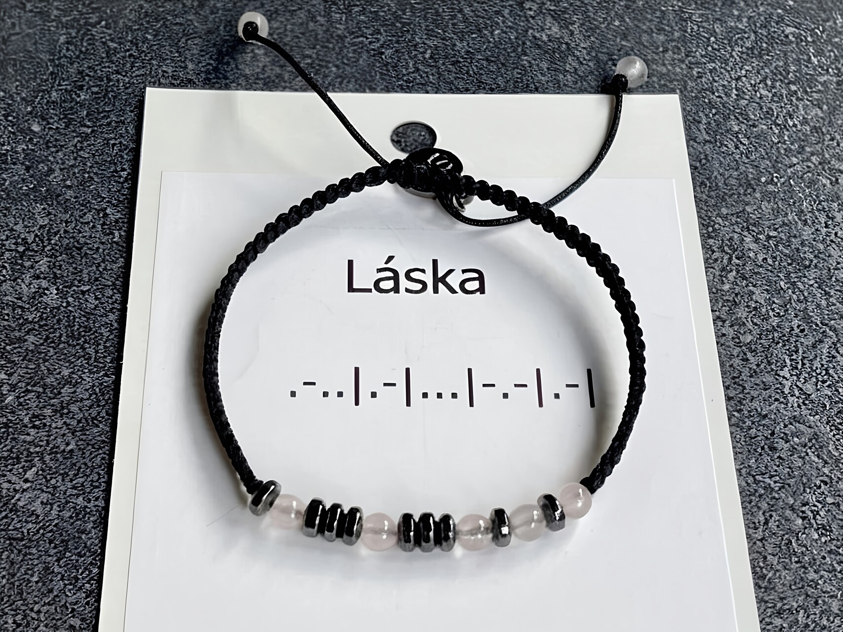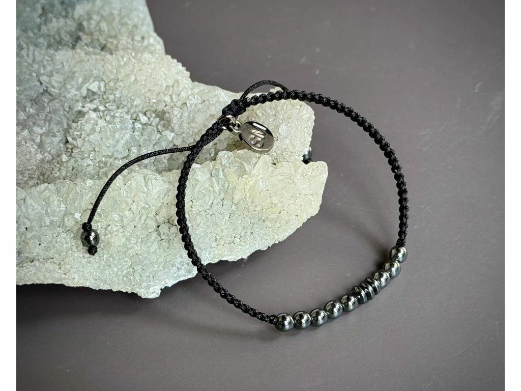 Decentní a výrazné zároveň - metalické minerály s vlastním morseovkovým vzkazem. Často volený jako osobní dárek i pro muže, který má rád smysluplné detaily. Hematit