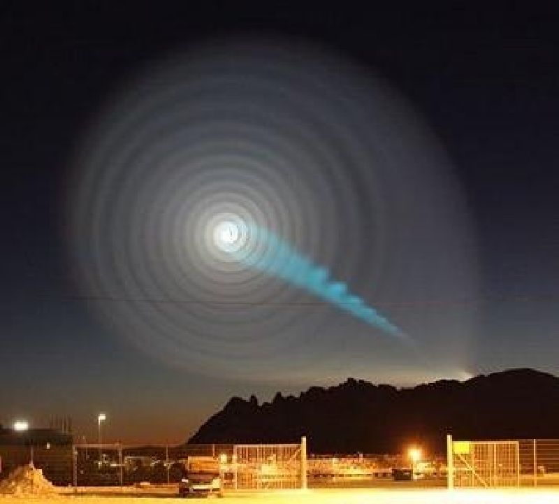 zeptá strejdy gůgla, tak zjistí že to je nejspíše stopa nezdařeného odpalu ponorkové střely. Spirálu vytvořilo ve stratosféře unikající palivo z rotující rakety.