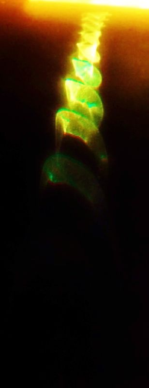 takhle si představuji můj mozek! Samá červená a nikde žádnej záhyb!! Také mi to připomíná list Bechyně mnišky, alias židovská třešeň! A ta zelená maska pod tím , je také velmi zajímavá!