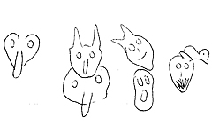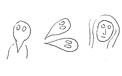 To ale nie je všetko. Okrem toho, že vidím svetlo, začala som vidiet kruhy s čiernymi očami, ktoré vyzerajú ako tváre. Komukožvek sa pozriem na ruku, predlaktie, každý tam má takúto tvár. Na ruke sa mi spravia bledé bodky, ktoré sa zväčšujú a vytvoria rôzne obrazy.